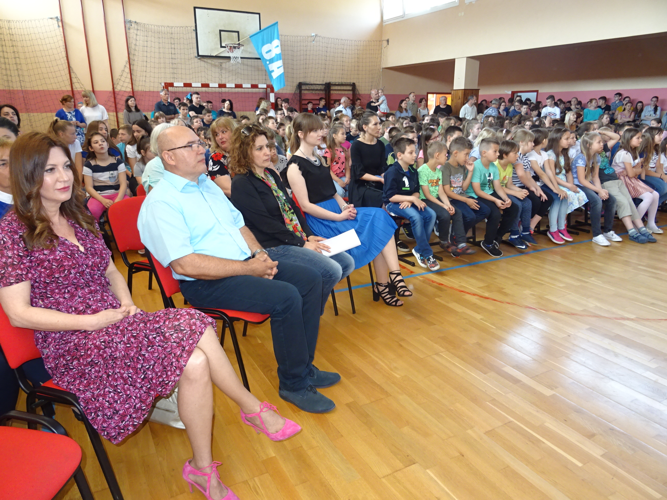 -Prema unaprijed definiranim kriterijima, kao i sociometrijskoj analizi, dvije su učenice poravnate gotovo u bod. Razredno vijeće jednoglasno je odlučilo obje učenice predložiti za naslov „učenice generacije“. Stoga , kao ravnatelj, proglašavam učenicama generacije Anu Latin i Niku Rihtarić iz 8. a razreda, te Leona Jurišu, učenika 8. b razreda – kazao je prof. Posarić.